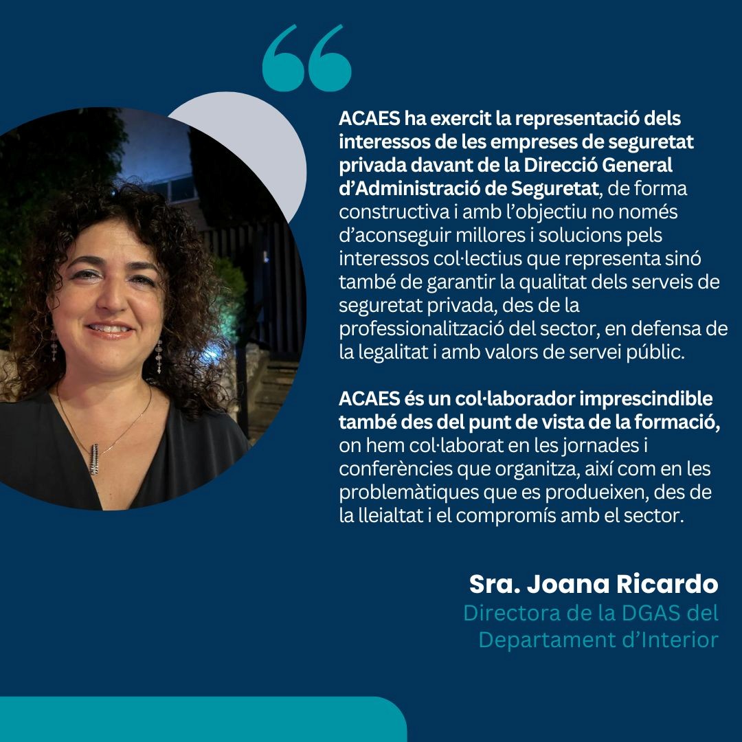 ACAES ha exercit la representació dels interessos de les empreses de seguretat privada davant de la Direcció General d’Administració de Seguretat, de forma constructiva. ACAES és un col·laborador imprescindible també des del punt de vista de la formació.